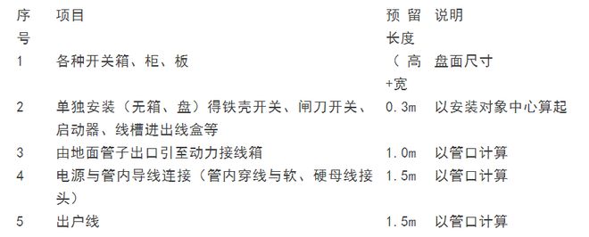 2.照明线以上的套用动力穿线.导线预留长度表(每一根线.照明器具安装不包括调试工作