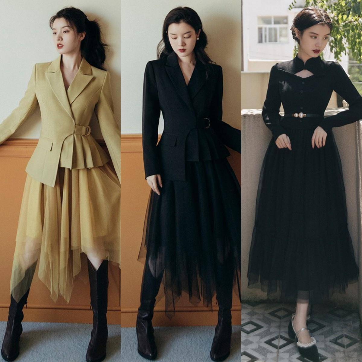 - 软硬结合,平衡力量:赫本裙本身给人柔和、优雅的印象,但在搭配时不妨加入一些硬朗的元素,如金属感的腰带、军靴或锐利的颈链等。软硬结合的设计,不仅为赫本裙增添了层次感,也能展现出女性的力量与自信,打破传统形象。