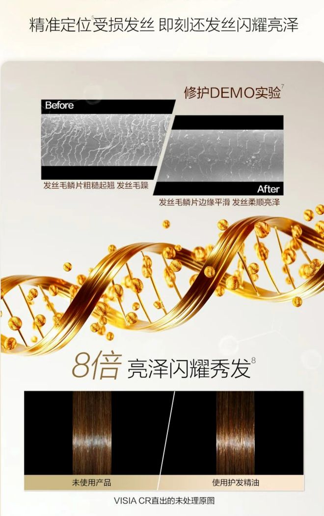 提升头发的顺滑度和光泽度减少头发的摩擦和热损伤使得烫染过的发色更持久……