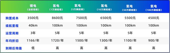当然,成本问题最终还是要靠出货量来解决。按照现有数据测算,在达到50万辆规模后,随着燃料电池成本+固态储氢供应链成本的下降,单车成本可以降到5500元以下,氢能共享车的折旧成本将开始低于锂电。而一旦具有了规模效应,氢电的经济性也会慢慢被大众所认可,也就可以开启下一阶段更大规模的复制推广了。