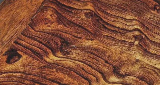 水波纹多出现在树木的弯曲部位,类似人的手肘窝弯曲的地方有皱纹一样,树木的水波纹形象点说就是木的皱纹,水波纹展现出来的就是水的波浪样子。水波纹在海黄纹路中也是非常难得。