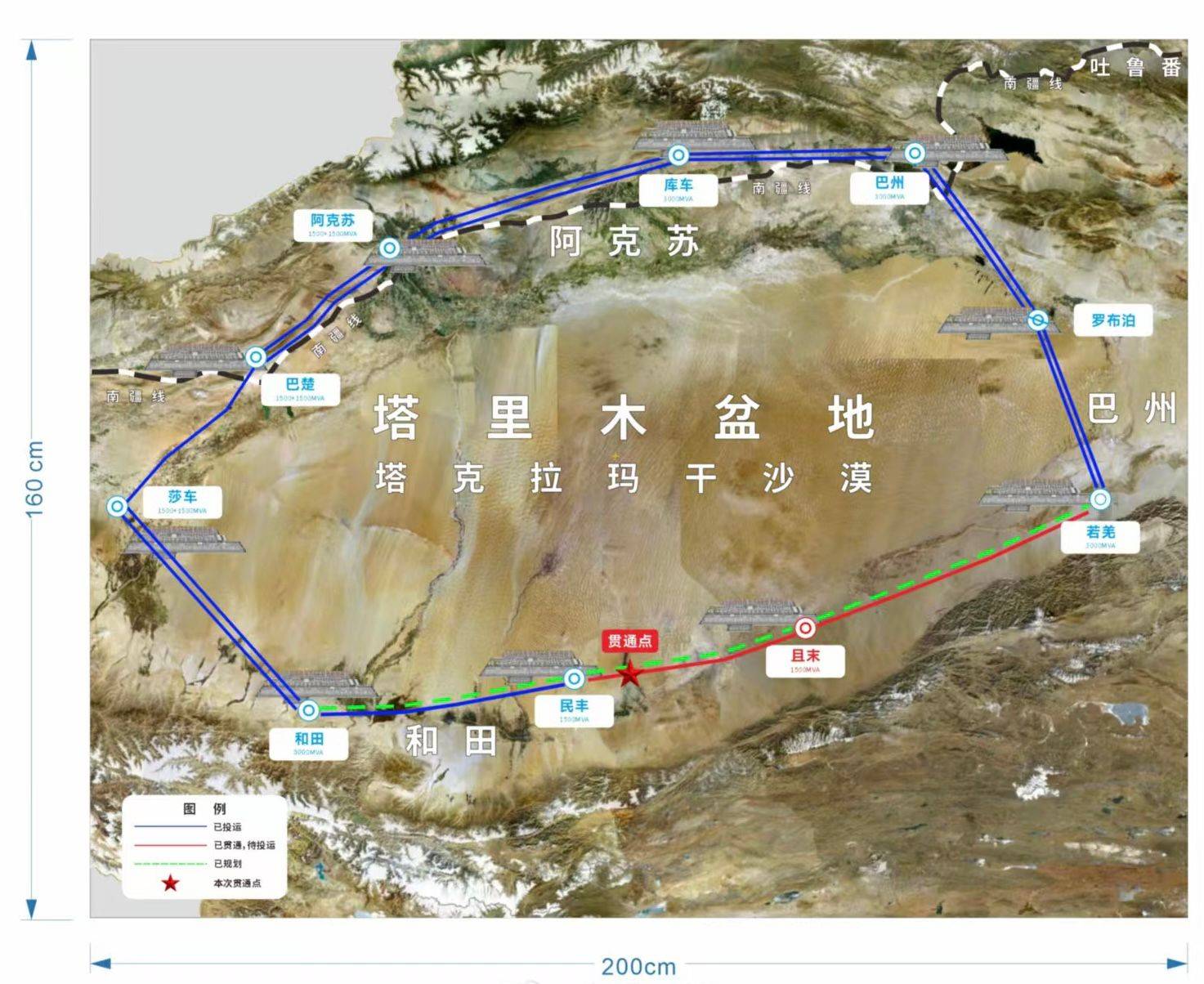 新疆环塔里木盆地750千伏输变电工程是我国电网建设的标志性工程,由9个分段工程构成,包括巴州变电站、库车-阿克苏-巴楚双回线路等重点项目。工程共建设变电站9座、开关站1座,环线公里,相当于从喀什到上海的直线距离。这条环绕塔里木盆地的环形电网,环内面积达53万平方公里,建成后覆盖南疆五地州106万平方公里区域,接近我国陆地面积的九分之一,成为全国最大的750千伏输电环网,将极大提升南疆地区的供电保障能力。